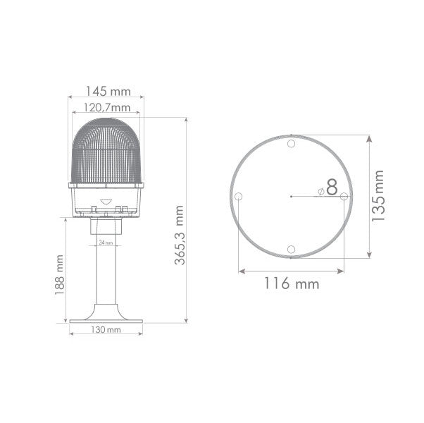 Gyrophare de surface, 12V/DC, fabricant MUCCO (Turquie)